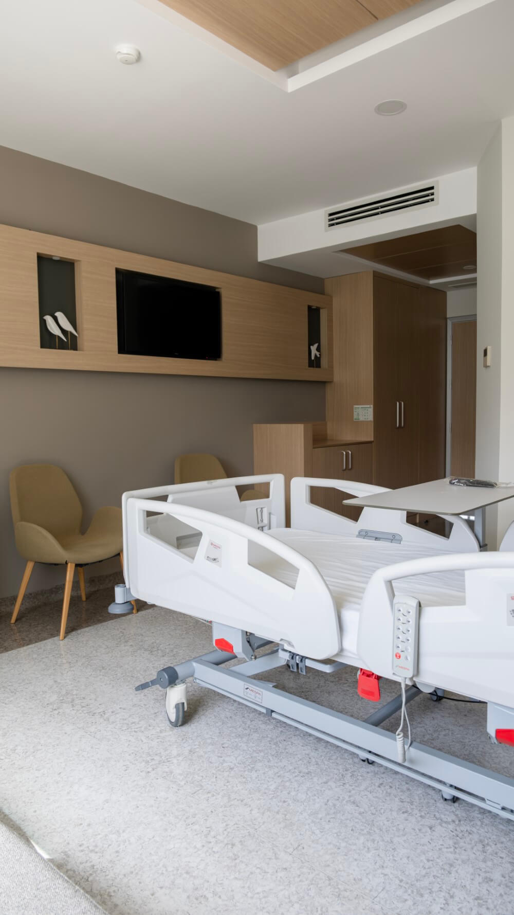 The most important of these investments is the ‘Additional Service Building’. The comfort of our patients and guests has been increased by connecting our annex building and our main building with an underpass. Our additional service building consists of 74 rooms, 15 of which are suites. In addition, it is designed in a luxury hotel concept with its cafeterias, spacious common areas and modern decoration as social facilities. 28 polyclinics are located in our additional service building, which provides more spacious and comfortable service especially for physiotherapy and rehabilitation and oncology patients.